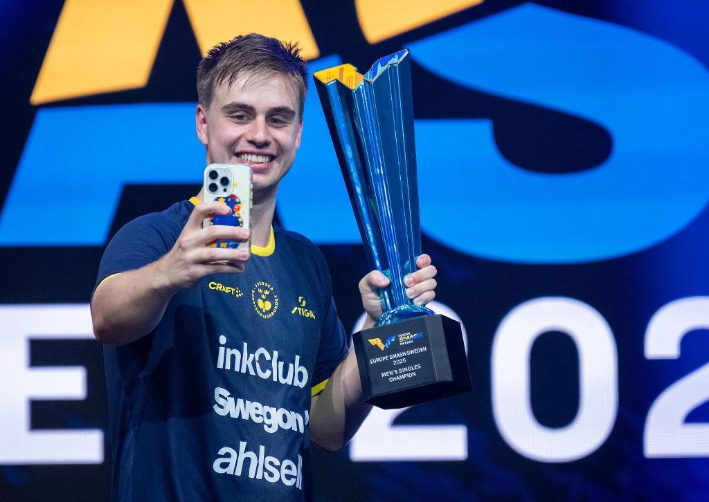 在家乡瑞典马尔默,23岁的莫雷加德在首届WTT欧洲大满贯上登顶男单赛场。与此同时,这也是国乒首次在WTT最高级别的赛场上丢掉了男单、男双两个冠军。